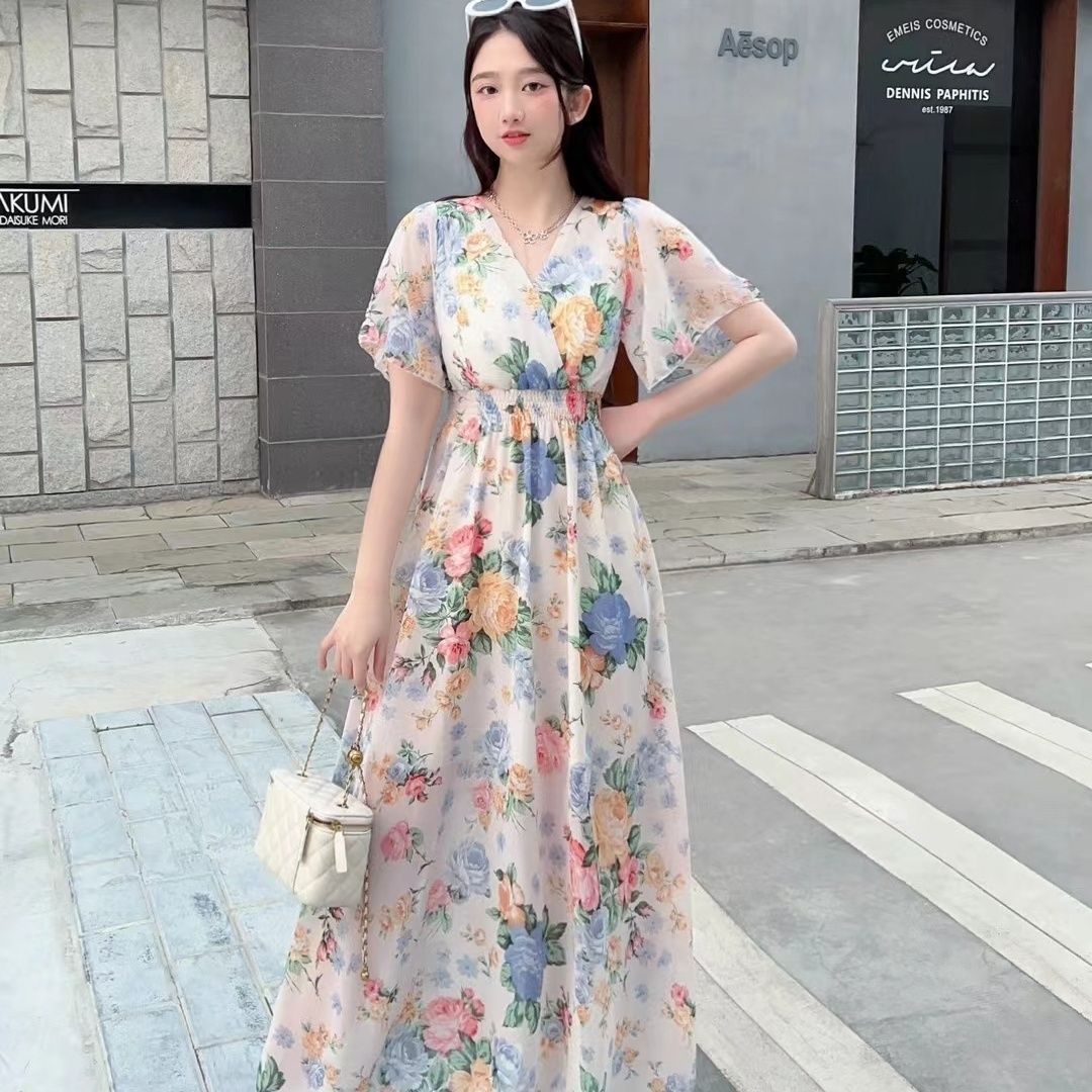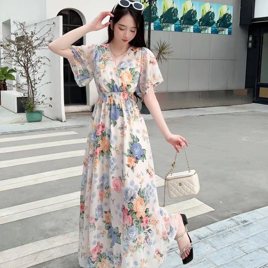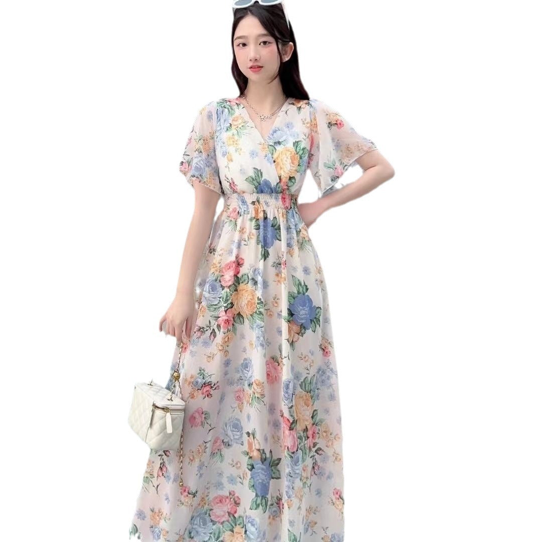 V-neck Mori Style Slim Fairy Floral Dress
