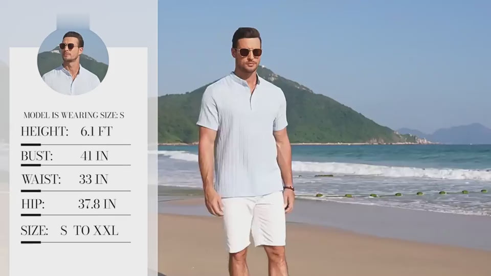 Summer Stand Collar Buttons Short Sleeve T-shirt Solid Color Stripe POLO Shirt Fashion Casual Beach Clothing For Men - Black / L